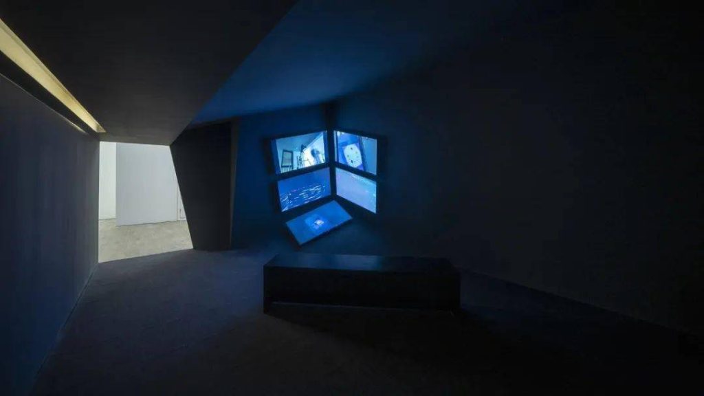© “一个人的房间”展览现场(由欧阳昆仑参与改造设计的8号房间中呈现了李明的影像装置作品《反馈,上》),2020。图片来源于网络
